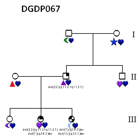 | Notes | - Daughter of DGDP 067 II_2 -Del(22) size: 2.6 Mb |